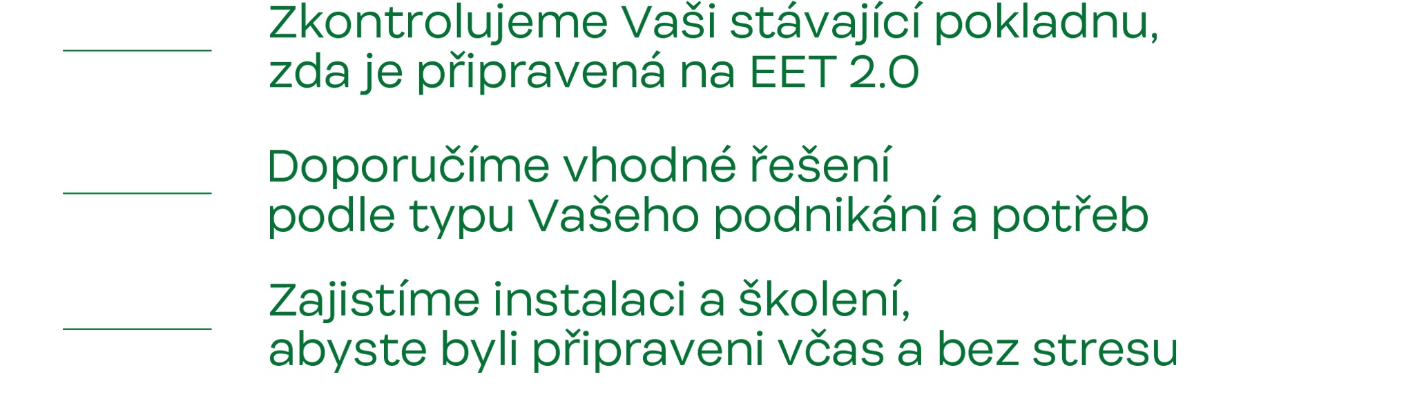 Zakládáme si na kvalitě a spolehlivosti produktů, které jsou naší vizitkou již desítky let. Zkušenosti z první vlny EET nám umožňují zajistit vám zcela bezproblémový přechod na modernizovaný systém. Ať už potřebujete jen softwarovou aktualizaci vašeho stávajícího zařízení, nebo hledáte zcela nové řešení na míru vašemu podnikání, postaráme se o vše s maximální odborností.